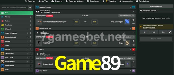 A aposta Game89 oferece aos jogadores a experiência mais conveniente de apostas em eSports!